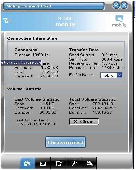 واخيرا فاني احذركم من الاندفاع وراء تلك الاعلانات الزائفة والكذب الصريح والغش الواضح التي تقوم يه هذه الشركات التي وجدت الأمن والامان من وزارة التجارةارجوا منكم ان تحذروا قبل ان تقدموا على دفع اموالكم لانكم في السعوديةانا من اكبر المعارضين لشركةالاتصالات السعوديةواكثر اثبات لدعواي التجربة وانا اتحدى اي احد انه يطلع عنده حجم اعلى استقبال او ارسال زي مابيقولوا انا والله ماكتبت هذا الكلام الا للنصح وبامكانك الاستفسار من اي احد يملك اشتراك كونكت اما بالنسبه للاتصالات السعودية فاني اسمع انهم سووا نفس الحركة ولا اتوقع ان شبكتهم الحجرية قد تكون افضل من شبكة صيد موبايليوهذه صورة للبرنامج تؤكد صحة كلامي حيث اني بقيت اتصفح الانترنت لمدة ثلاث ساعات ولم تصل السرعة حتى الى 0.5 (نص) ميغابايت