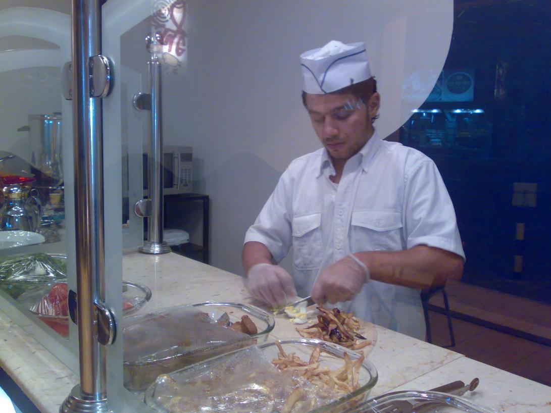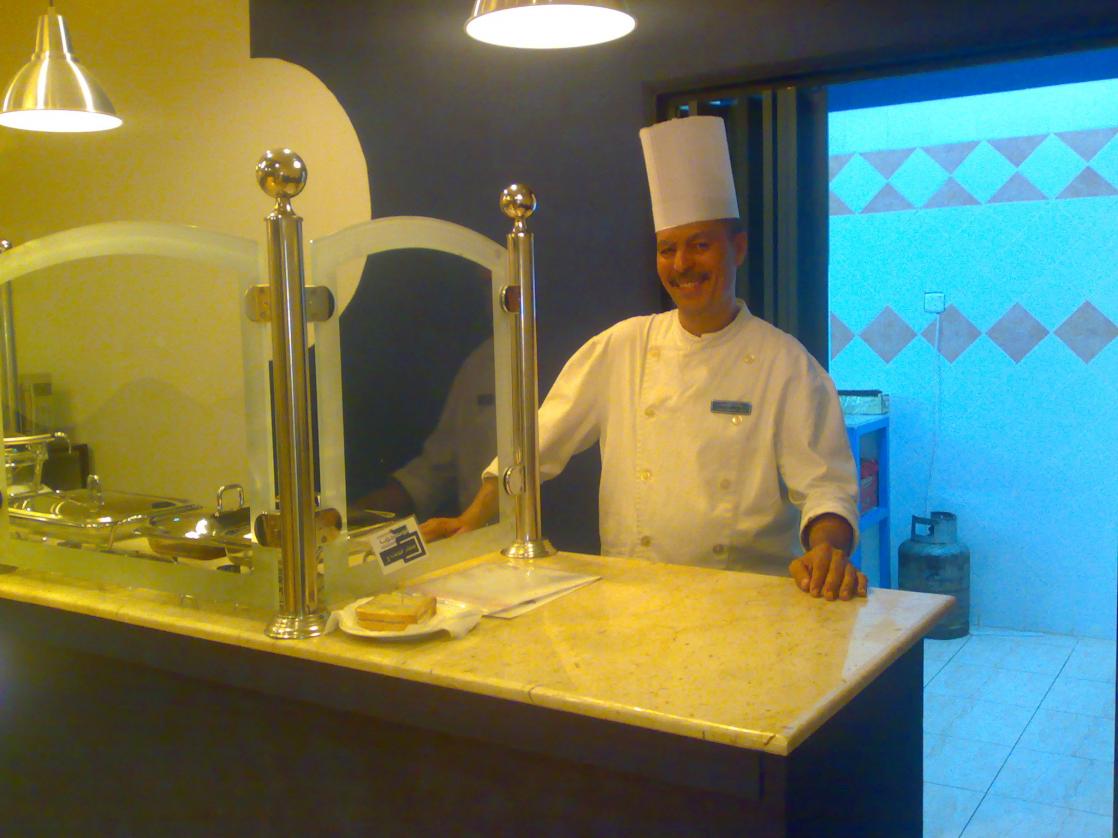 واستاذنت الشيف وأذن لي بالصور وقال عندي الثقة أن تطلع على كل مكان بالمطعم لتتأكد من صحية عملنا في الطهي