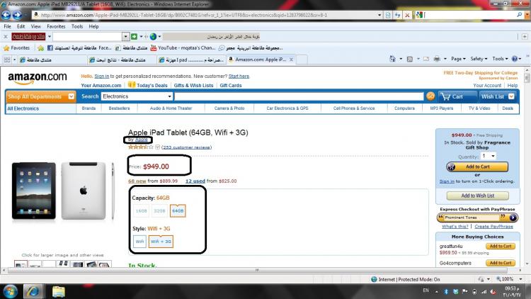 بالنسبة للأخت جمرة غضا الموقع الثاني مسوي عرض اقل من امازون بالنسبة لجميع انواع الايباد فأبياد 65جيجا 3جي + واي فاي سعره 729 $