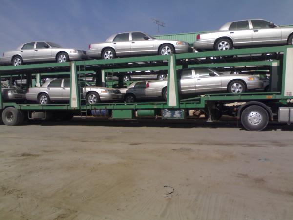 وانا طالع من البيت شفت شاحنه كبيره للبسامي فيها 8 سيارات كراون فكتوريا جديده