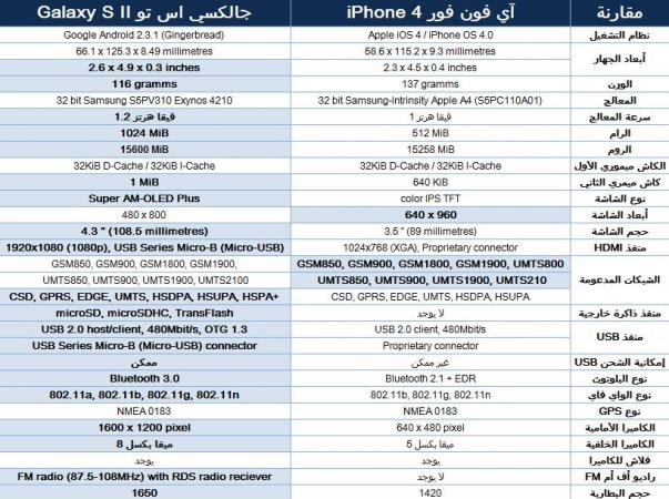 يعني السامسونج اس 2 افضل ب 20 خاصية والايفون 4 افضل بثلاث خاصيات فقط ( الجزء المضلل هو الافضل كما ترى في الاعلى