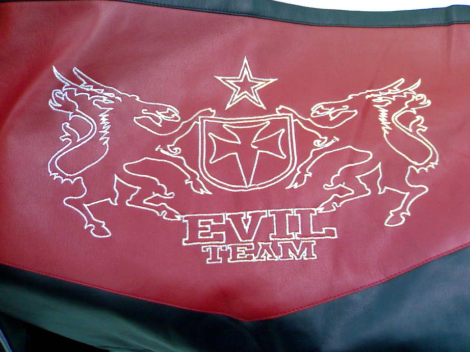 أما الشعار إللي على الظهر (أعلاه) فهو إللي مضروب و مكتوب عليه (بعد التدقيق) الفريق الشرير .. بمعنى أخر (بأخذ الرسمة في الإعتبار) فريق الشياطين.