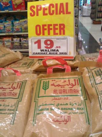 كانت هناك أيضا أكياس بن داود معبأة بوزن الزكاة المطلوب لكني نسيت تصويرها كما أني لا أعرف نوع الأرز المعبأ لكن حسب ما أذكر كانت هناك نوعين .. مصري و أمريكي .. و السعر كان 9.50 ريال للكيس.