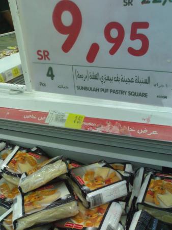 في بروشور التخفيضات الخاص ببنده لقيت عرض على عجينة السنبلة "بف بايستري" 4 حبات بـ 9.95 ريال.