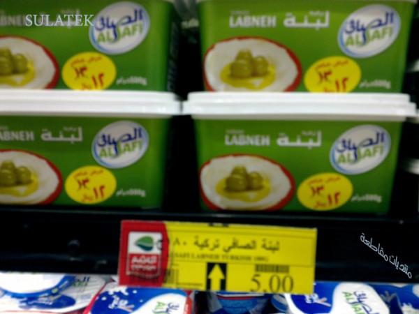 لاحظوا ( لبنة الصافي تركية ) !! مع اني قلبت المنتج ما وجدت عليه أية دلائل على كلمة تركية المكتوبة على لافتة سعر المحل !