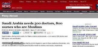 وأوضحت شبكة «جي أم إيه» بحسب الحياة أن إحصاءات رسمية في مانيلا تشير إلى أن السعودية هي المكان المفضل الأول الذي توجهت إليه العمالة الفيليبينية في عام 2010، ويبلغ عددهم 293049 شخصاً، 8771 منهم عاملون في التمريض.