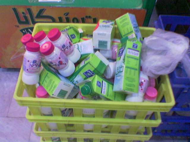 انظروا الى لبن المراعي مكدس فوق بعضه بعد ان انتهت تاريخ صلاحيته دون ان يجد من يشتريه