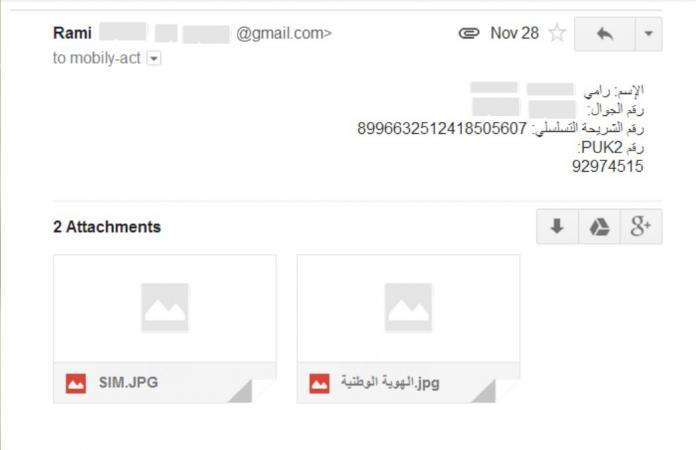 4: قمت بالتواصل مع موبايلي للتأكد من بيناتي رسميا عبر الإيميل و افادوا ان الشريحة ليست مسجلة بإسمي حتى الأن