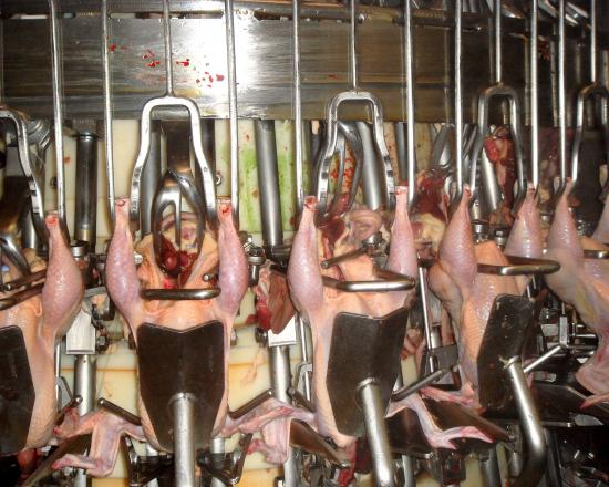 جزار يقوم بتذكية الدجاج قائلاً بسم الله والله أكبر
