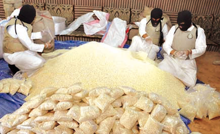 المخدرات: ضبط ستة ملايين وألفين وأربعمائة قرص إمفيتامين مخدر ملف مرفق 5906 ملف مرفق 5907 ملف مرفق 5908 ملف مرفق 5909 الجزيرة - سعود الشيباني: أوضح الناطق الرسمي للمديرية العامة لمكافحة المخدرات أنه في إطار مهام المديرية بمتابعة مخططات تهريب المخدرات إلى المملكة، وبناء على ما توفر من معلومات عن تهريب كمية كبيرة من المخدرات إلى المملكة باستغلال الشاحنات العابرة لأراضي المملكة «ترانزيت»، فقد تم تكليف فرقة أمنية خاصة من رجال مكافحة المخدرات بمنطقة الرياض بمهمة التحري عن إحدى الشاحنات المستخدمة في جريمة التهريب ومتابعتها وتحديد المتورطين فيها. وقال في تصريح لوكالة الأنباء السعودية إن الفرقة تمكنت بعون الله وتوفيقه من تحديد موقع الشاحنة بمدينة الرياض وإخضاعه للمتابعة الأمنية ومداهمته، بعد رصد عدد من المتورطين في جريمة التهريب، والقبض على (6) أشخاص، سعوديان و(3) سوريين وشخص أردني الجنسية، وُضبط بحوزتهم ستة ملايين وألفين وأربعمائة قرص إمفيتامين مخدر تم إخفاؤها بخلطها مع حبوب الذرة والحُمص في (24) شوالاً. وأضاف الناطق أن الجهات المختصة باشرت في استكمال الإجراءات النظامية بالتحقيق مع المتورطين في تهريب واستقبال المواد المخدرة وإحالتهم للجهات العدلية. http://www.al-jazirah.com/2013/20130520/lp2.htm |