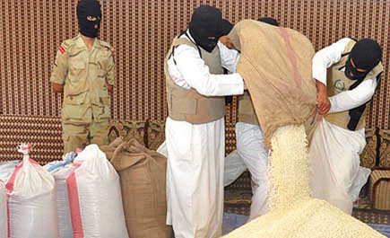 إصابة 19 رجل أمن ومقتل 3 مروجين ومهربين في مواجهات مسلحة "الداخلية" تعلن إحباط تهريب وترويج مخدرات بـ 2.5 مليار ريال خلال 5 أشهر ملف مرفق 5946 ' عبدالله البرقاوي- سبق- الرياض: كشفت وزارة الداخلية اليوم عن تمكنها خلال الأشهر الخمسة الماضية من القبض على 654 متهماً في جرائم تهريب واستقبال ونقل وترويج مخدرات، تقدر قيمتها بـ (2.512,191,325) ريالاً, مبينة أن هذه الإنجازات جاءت في عمليات أمنية مختلفة واجه خلالها رجال الأمن مقاومة بالأسلحة نتج عنها إصابة 19 رجل أمن إضافة لمقتل 6 وإصابة 11 من مروجي ومهربي المخدرات. وفيما يلي نص البيان: إلحاقاً للبيان المعلن بتاريخ 12/ 5/ 1434هـ عن نتائج تنفيذ مهام رجال الأمن في مكافحة جرائم تهريب وترويج المخدرات خلال أشهر (محرم، صفر، ربيع الأول، ربيع الثاني) من العام 1434هـ، صرح المتحدث الأمني بوزارة الداخلية بأن الجهات الأمنية المختصة تمكنت بتوفيق الله تعالى خلال أشهر (جماد الأول، وجماد الآخر، ورجب، وشعبان، ورمضان) من هذا العام 1434هـ من القبض على (991) متهماً منهم (337) سعودياً بالإضافة إلى (654) متهماً من (33) جنسية مختلفة لتورطهم في جرائم تهريب ونقل واستقبال وترويج مخدرات تقدر قيمتها السوقية بـ(2.512,191,325) مليارين وخمسمائة واثني عشر مليوناً ومائة وواحد وتسعين ألفاً وثلاثمائة وخمسة وعشرين ريالاً. وقد واجه رجال الأمن خلال أدائهم لمهامهم مقاومة مسلحة في عدة عمليات أمنية من قبل المهربين والمروجين نتج عنها إصابة (19) من رجال الأمن، ومقتل (3) وإصابة (11) من مهربي ومروجي المخدرات، وبلغ إجمالي ما تم ضبطه من المواد المخدرة والمؤثرات العقلية في هذه العمليات ما يلي: أولاً: (7) سبعة كيلو و(928) تسعمائة وثمانية وعشرين جراماً من الهيروين الخام و(1) كيلو و(3) ثلاثة جرامات من الهيروين المعد للترويج. ثانياً: (20) عشرين طناً و(437) أربعمائة وسبعة وثلاثين كيلو من الحشيش المخدر. ثالثاً: (15) خمسة عشر مليوناً و(293) ومائتيـن وثلاثة وتسعيــن ألفـاً و(189) مائة وتسعة وثمانين قرصاً من مادة الإمفيتامين. رابعاً: (2) كيلو و(336) جرام من مادة الكوكايين المخدر الخام. خامساً: (124) مائة وأربعة وعشرين ألفاً و(892) ثمانمائة واثنين وتسعين قرصاً خاضعاً لتنظيم التداول الطبي. ملف مرفق 5947 ملف مرفق 5948 ملف مرفق 5949 ملف مرفق 5950 ملف مرفق 5951 ملف مرفق 5952 ملف مرفق 5953 ملف مرفق 5954 ملف مرفق 5955 http://sabq.org/eJBfde |