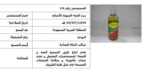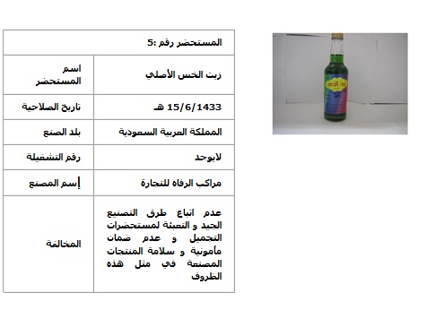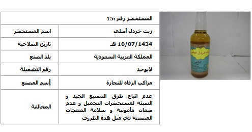 الهيئة العامة للغذاء والدواء في السعودية في إطار الدور الرقابي للهيئة العامة للغذاء والدواء للتحقق من سلامة ومأمونية مستحضرات التجميل ، وبالتعاون مع الجهات المختصة تم الوقوف على مصنع غير مرخص باسم ( مراكب الرفاه للتجارة ) يقوم بتعبئة عدد 18 من مستحضرات التجميل تشمل بعض أنواع الزيوت المستخدمة للشعر ومزيلات العرق والبخور في منطقة سكنية دون إتباع طرق التعبئة والتصنيع الجيد لمستحضرات التجميل والمنصوص عليها في المواصفة القياسية السعودية الصادرة في هذا الشأن ، وقد قامت الهيئة بمخاطبة الجهات المعنية لاتخاذ الإجراءات النظامية اللازمة لسحب هذه المستحضرات الموضحة في الجدول المرفق . وتنصح الهيئة المستهلك بعدم استخدام مستحضرات ( مراكب الرفاه للتجارة ) والموضح أسمائها وصورها على موقع الهيئة والتخلص مما لديهم من عينات ، كما تنصح المستهلك بالتأكد من وجود المعلومات الكافية على منتجات التجميل كاسم المصنع وعنوانه والمحتوى ورقم التشغيلة وتاريخ الإنتاج. وستواصل الهيئة رسالتها التوعية من خلال الإعلان عن أي منتجات مضرة لصحة المستهلك . مراكب الرفاه للتجارة 1 زيت المرمرية للشعر marmariah hair oil 2 زيت لوز مر almond oil 3 زيت خروع body oil 4 زيت جلسرين ( البارفين ) 5 زيت الخس الأصلي 6 البخور الدوسري 7 زيت الجرجير الأصلي 8 زيت خروع أصلي للشعر 9 زيت البصل الأصلي للشعر 10 زيت السدر الاصلي للشعر 11 زيت البابونج الأصلي للشعر والجسم 12 زيت لوز حلو للشعر 13 الزيوت السبعة للشعر 14 زيت الحبة السوداء الأصلي للشعر والجسم 15 زيت خردل أصلي للشعر 16 مزيل العرق ( الرفاه ) 17 زعفران إيراني أبو شيبه ماركة الرفاه 18 زيت النخاع التونسي للشعر المصدر http://www.salamaty.com/news-action-show-id-202.htm |