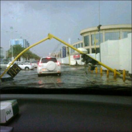 أجل، هطلت الامطار بغزارة واغرقت جدة بمياه الصرف الصحي كالعادة، انا مريت بشارع صاري الساعة 12:30 وهاكم ما رأيت :