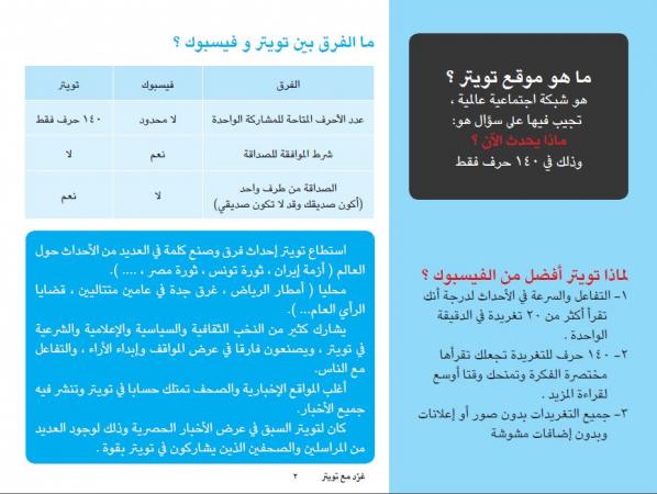لايوجد موضوع ......التويتر هو برنامج اجتماعي الغرض منه كما افهمه هو ان تنبه الى مشكلة او حدث بطريقة النخز او الوخز ليس باي اداة ولكن بالكلام المختصروهذا الكلام او الوخز او المداعبة له دلالات اجتماعية تؤثر في اكبر عدد ممكن من الناس بسبب حقيقتها او قوة تاثيرها على المجتمع ويجب ان يكون الكلام اللذي تضيفه في موضوع الصفحة التي فتحتها وهي في هذه الحالة صفحة المستهلك ارجو ان اكون قد وضحت لو بعض الشىء واعتذر اذا لم يكون كلامي واضح او دقيق لان استخدامي له قليل فقد تجدين منه اكثر مني تجربة في استخدام هذا البرنامج وشكرا |