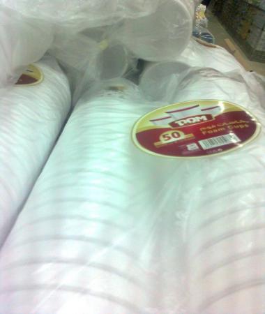 والعلب الكبيره مصنعه من نفس ماده الاكواب يبيعون اغلب المطاعم فيها الاكل |