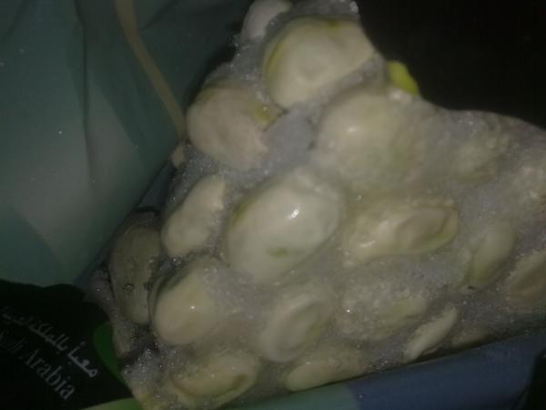 لكن لماذا يخرج الماء من حبة الفول؟ ولماذا لا نجد هذه المشكلة مع انواع اخرى؟ انا اظن (وان شاء الله اكون مخطيء) ان الماء تم اضافته عمدا |