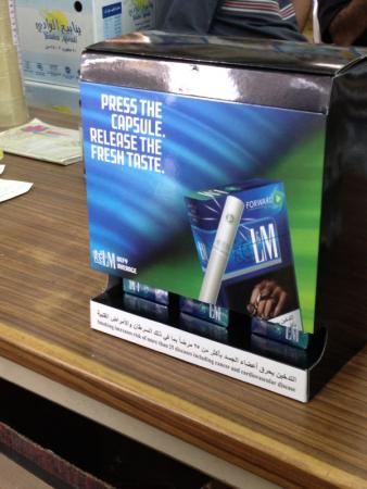 ولاتزال شركات التبغ تتفنن في تزيين منصات بيع منتجاتها و تجميلها لجذب المزيد من الضحايا لها: ولا تنسوا أن شركات التبغ نفسها هي من تنفق على مثل هذه المواقع و تساعد القائمين عليها بدفع مبالغ لهم لتأجير الموقع المميز وإعطائهم حوافز و هدايا وبضاعة مجانية لضمان ولائهم واستمرار تمسكهم لمكاسب هذه السموم مهما تعرضوا لضغوط. حسب ما بلغني .. منصة بيع كالتي في الصورة اعلاه قد يصل مجموع مبالغ تأجيرها الذي تدفعه شركات التبغ لصاحب المركز التجاري أو المسئول عن تشغيل الموقع(كل شركة تدفع حسب حجم ستاند العرض الخاص بها) إلى 30 أو 40 ألف ريال سنويا .. ناهيكم عن الحوافز والهدايا التي تكون عادة عبارة عن بضاعة مجانية يكون مكسبها خالصا لصاحب المحل. :crying: ونتعجب عن فشل جهود مكافحة التدخين.. :mad: |