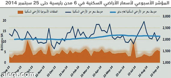 مؤشر "الاقتصادية" العقاري: الأراضي تستحوذ على 99 % من إجمالي تداول السوق العقارية السعودية ركود في شراء الفلل السكنية بـ - 36 % .. ونشاط في الأراضي 11 % ملف مرفق 6175 عبدالحميد العمري أداء السوق العقارية خلال أسبوع سجل المعدل العام الأسبوعي لأسعار العقار بنهاية الأسبوع في 25 أيلول (سبتمبر) 2014 تراجعا بنسبة - 17.6 في المائة، ليستقر عند معدل 3713 ريالا للمتر المربع، مقارنة بنحو 4506.6 ريال للمتر المربع بنهاية الأسبوع السابق، أتى التأثير الأكبر للتراجع من تراجع المعدّل العام الأسبوعي لأسعار العقار السكني لنفس الأسبوع بنسبة - 26.1 في المائة، ليستقر عند مستوى 3426.8 ريال للمتر المربع، وقلص من حدة تراجع المعدل العام للسكني والتجاري، الارتفاع الأسبوعي الذي حققه المعدل العام الأسبوعي لأسعار العقار التجاري بنسبة 30.6 في المائة. ملف مرفق 6176 كما سجل حجم الصفقات العقارية ارتفاعا خلال الأسبوع، بلغتْ نسبته 2.6 في المائة ليصل إلى أكثر من 10.1 مليار ريال، مقارنةً بمستواها السابق البالغ 9.86 مليار ريال. أتى مصدر الارتفاع الأقوى والوحيد من ارتفاع حجم الصفقات الأسبوعية للقطاع التجاري، الذي سجل ارتفاعا قياسيا بنسبة 69.9 في المائة، مسجلا صفقات بلغت قيمتها 4.34 مليار ريال، على الرغم من تراجع عدد العقارات بأنواعها المختلفة المبيعة (استراحة، أرض زراعية، بيت، شقة، عمارة، فيلا، قطعة أرض، مرفق، مركز تجاري، معرض/محل) خلال الأسبوع من 1623 عقارا بنهاية 18 أيلول (سبتمبر) إلى 1419 عقارا بنهاية 25 أيلول (سبتمبر) 2014. في المقابل تراجعت قيمة الصفقات الأسبوعية في جانب القطاع السكني بنسبة - 20.9 في المائة، لتستقر عند 5.78 مليار ريال بنهاية الأسبوع، وتراجع معها عدد العقارات المبيعة خلال الأسبوع من 7101 عقار إلى 6325 عقارا، بنسبة انخفاض أسبوعية بلغت - 10.9 في المائة. ملف مرفق 6177 أداء السوق العقارية خلال شهر سجل المعدل العام الشهري لأسعار العقار بنهاية أيلول (سبتمبر) 2014 تراجعا بنسبة - 7.9 في المائة، ليستقر عند معدل 4087.70 ريال للمتر المربع، جاء التراجع الأكبر في المعدّل العام الشهري لأسعار العقار التجاري بنسبة - 53.8 في المائة مستقرا عند 4286.7 ريال للمتر المربع، مقابل تراجع أدنى في المعدل العام الشهري لأسعار العقار السكني بلغت نسبته - 9.4 في المائة، ليستقر عند 4778.3 ريال للمتر. ملف مرفق 6178 على مستوى الصفقات الشهرية للسوق، سجل إجمالي الصفقات ارتفاعا شهريا بنسبة 28.8 في المائة، لتصل إلى نحو 34.61 مليار ريال بنهاية أيلول (سبتمبر)، مقارنة بنحو 26.86 مليار ريال بنهاية آب (أغسطس) الماضي، كما سجلت نموا سنويا بالمقارنة مع نفس الشهر من العام الماضي بلغت نسبته 11.7 في المائة. وأتى حجم الصفقات الشهرية للقطاع السكني الذي يشكل 66.5 في المائة من إجمالي الصفقات الشهرية مرتفعا إلى 23.03 مليار ريال، بارتفاع شهري بلغت نسبته 23.8 في المائة، ونمو سنوي مع نفس الشهر من العام الماضي بنحو 23.4 في المائة. كما ارتفع حجم الصفقات الشهرية للقطاع التجاري لنفس الشهر بنسبة 40.2 في المائة إلى 11.58 مليار ريال، بينما سجل انخفاضا سنويا بنسبة - 6.0 في المائة. بالنسبة لأعداد العقارات المبيعة خلال الشهر، فقد سجل مجموعها ارتفاعا 60.2 في المائة، مقارنة بالشهر السابق، لتتجاوز 25.8 ألف عقار مبيع، مقارنة 17.8 ألف عقار خلال الشهر السابق. وحسبما تبين الإحصاءات الصادرة من وزارة العدل، تشكل الأراضي والأراضي الزراعية النسبة الأكبر في ميزان السوق العقارية بصورة عامة، التي بلغ إجمالي قيمة تعاملاتها خلال عام 2013 بأكمله نحو 419 مليار ريال (15 في المائة من إجمالي الناتج المحلي)، في حين وصل إجمالي قيمة تعاملاتها من بداية العام الجاري حتى نهاية أيلول (سبتمبر) الماضي إلى 339.5 مليار ريال، تؤكد الإحصاءات أنّ الأراضي عموما (قطع الأراضي، الأراضي الزراعية) تشكل من حيث نسبتها إلى إجمالي عدد العقارات المنقولة نحو 91.9 في المائة من إجمالي العدد، وتشكل نحو 93.3 في المائة من إجمالي قيمة الصفقات، وتشكل نحو 99.0 في المائة من إجمالي مساحات تلك العقارات. ملف م