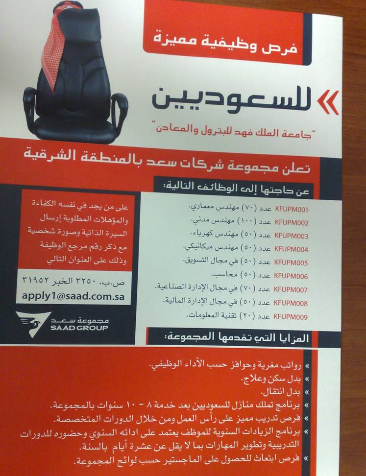 وظائف شاغره بمستشفى سعد لخريجي جامعة الملك فهد للبترول والمعادن
