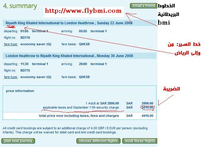 وصلني الخبر بالايميل التالي ولكن ماصدقت الخبر..سافرت قبل شهرين على ال BMI التي تقلع من الدمام عبر الرياض..ولم ادفع هذه الرسوم..طبعآ الاقربون اولى بالمعروف ولكن رحلات السعوديه لاتتناسب مع مواعيدي مما اضطرني السفر.. بحثت في الموقع اليوم وماوجدت سبتمبر 11 فقط المبلغ..1626 http://www.flybmi.com/bmi/en-gb/plan...di-arabia.aspx?الخبر بالايميل.. اذلال الخطوط الجوية البريطانيه للسعوديين قامت الخطوط البريطانية وهي تعمل بالمملكة العربية السعودية بفرض ضريبة إرهاب 11 سبتمبر على كل من يسافر من أو إلى الرياض بمبلغ وقدره 225 باوند بما يعادل 1600 ريال سعودي , لذا يجب علينا مقاطعة هذه الشركة التي تسعى لإذلال الشعب السعودي مع الأسف الشديد, وبرفقة الموضوع صورة للموقع لمن يريد التأكد من صحة الخبر ,وعليه أن يحجز الآن ليصله الرد, والله إنها مهزلة ليس بعدها أي مهزلة, فإلى متى نقبل الإهانات من حكومة حزب العمال ؟! نرجو من السعوديين مقاطعة هذه الشركة الحاقدة على الإسلام وأهله. الخبر من جريدة اليوم هذا اليوم مطالب بجمعية لحماية المسافرينشركة طيران بريطانية تفرض ضريبة «11 سبتمبر» على السعوديين فيصل الفريان ـ الخبر حذر مسؤولون بالغرف التجارية من مخاطر قرار اتخذته شركة طيران بريطانية بفرض زيادة على تذاكر المواطنين السعوديين الراغبين في زيارة لندن تحت مسمى «تأمين مخاطر أحداث سبتمبر» واصفين الزيادة بأنها غير منطقية، مؤكدين انها لن تؤثر على توجه السعوديين إلى بريطانيا، وأوضح عضو اللجنة السياحية بالغرفة التجارية بالشرقية والمنسق العام لمكاتب السياحة بالمنطقة عبد الله بوخمسين أنه يعمل على الاتصال بالمسؤولين في شركة الطيران البريطانية (bmi) للتأكد من صحة الزيادة على السعوديين تحديداً، مشيراً إلى أنه وصلت لمجموعة من المكاتب السياحية نشرات تؤكد ذلك إلا أنه لم نتأكد من المسمى بسبب الزيادة ، وقال لـ(اليوم) ان هيئة الطيران المدني المسؤولة الأولى أمام هذا القرار من قبل الشركة البريطانية وليس للمكاتب السياحية أي مسؤولية لمخاطبة أو رفض التسمية . من جهته، اتفق عضو لجنة السفر والسياحة بغرفة الرياض ناصر الطيار، على ما سبق، مطالباً بتأسيس جمعية لمكاتب السفر والسياحة، لحماية حقوق المسافرين السعوديين من أية استغلالات محتملة. وكانت شركة طيران بريطانية ( bmi) أضافت سعر 1610 للتذكرة الواحدة من المملكة إلى بريطانيا في مكاتب السياحة السعودية تحت مسمى التأمين وزيادة ثمن البنزين للطائرات بينما توضح على موقع الإنترنت الخاص بالشركة مسمى ( تأمين مخاطر أحداث 11 سبتمبر ) . ووفقا لإحدى التذاكر ـ التي صدرت بالفعل ـ فإن السعر قبل الضريبة كان 2806 ريالات، وبعد إضافة الضريبة المزعومة (1610 ريالات)، أصبح المبلغ 4416 ريالا . http://www.alyaum.com/issue/article....12802&I=596858 |