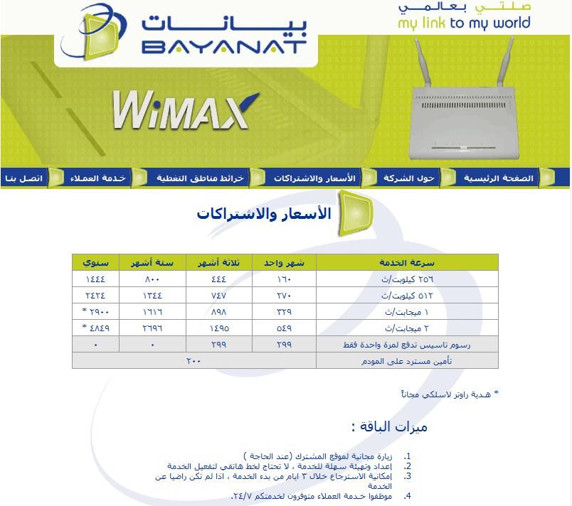 تقنية الواي ماكس متوفرة بالسعودية وستنتشر بقوة كبديل للدي اس ال البطيء والغالي ... 1- شركة بيانات لخدمات الواي ماكس .. موقعهم وطرق التسجيل هنا http://www.bayanat.com.sa/registration/ar/index.php شاهد الخدمة .. بدون هاتف .. بدون فواتير .. بدون اسلاك كيف تعمل تقنية الواي ماكس ؟ عبارة عن بث لا سلكي من ابراج تم ولازال يتم بناؤها في كامل المملكة لتغطي جميع المدن الرئيسية بنهاية السنة كما صرحت موبايلي وعلى فكرة شركة بيانات اشترتها شركة موبايلي بـ مليار و 500 مليون ريال .. وذلك فقط من اجل تقنية الواي ماكس للانترنت ( تصوروا كل هذا المبلغ من اجل هذه التقنية الثورية ) التقنية بدات تنتشر بشكل كبير خصوصا لدى الشركات والبنوك .. لا حظوا أسطح البنوك ستجدون أعمدة وبها لوح استقبال صغير مربع .. هذه احدى وسائل استقبال الواي ماكس للانترنت ... المستخدم العادي يحتاج فقط الى جهاز مودم لا سلكي صغير لالتقاط بث الواي ماكس .. وبكل بساطة استخدام الانترنت مباشرة ... إذ لا حاجة لوجود خط هاتفي فكما قلت التقنية لا سلكية ... كما الانترنت لا يمر عبر شركة الاتصالات .. بل على العكس ... مباشرة الى المنافذ الدولية الخاصة بشركة بيانات . في الربع الثالث من هذه السنة ان شاء الله ستبدأ الشركات كلها بالترويج للواي ماكس بشكل خرافي ... *** للتقديم على هذه الخدمة عن طريق موقعهم وشرح التسجيل والاتصال هنا نقاط للتوضيح بشكل اكبر : * الخدمة لا تشبه موبايلي كونكت الا في كونها لا سلكية فقط , اما التقنية فهي مختلفة وجدا قوية وصنعت خصصيا للانترنت وشبكتها خاصة بالانترنت .. وهي كما وصفها بيل جيتس رئيس مايكروسوفت بمستقبل الانترنت لتغطية مساحات ضخمة .. * لا تحتاج الى شريحة هاتفية , فهذه خدمة انترنت مختلفة ولا علاقة لها بابراج شركات الاتصالات, بل لها أبراج خاصة. * عند الاشتراك يتم تسجيل الرقم التسلسلي للمودم .. ومباشرة تتعرف عليه الشبكة ويتصل بالانترنت اتوماتيكيا دون اي تعديل منك , لايوجد اسم مستخدم ولا كلمة سرية , بل اتصال مباشر بالانترنت . * المودم يوجد به كيبل للاتصال بالنت . وفي حالة الرغبة بتوزيع الاتصال لا سلكي, يحتاج فقط الى موزع لاسلكي مثل سبيدتس من اي محل. * عند الاشتراك بـ 6 او اكثر .. لا تدفع لا قيمة تأسيس ولا حتى تامين على المودم . فقط الاشتراك الشهري. سرعة احد المستخدمين ......... الخدمه شغاله في اربع مدن فقط حاليا جده والرياض والدمام والخبر وفي القريب العاجل جميع مناطق المملكه |