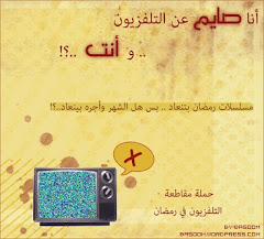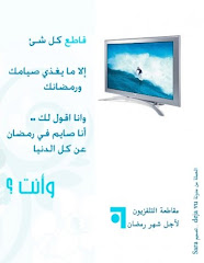 اشترك في الحملة بوضع صورها في موقعك الشخصي وتوقيعك ثم ساهم معنا في نشرها في النت حملة "مقاطعة التلفزيون لأجل شهر رمضان" اليكم صور المقاطعة لمزيد من التفاصيل تفضل هنا |
