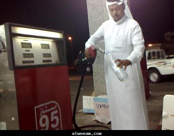 احمد الشلهوب ( الوئام ) جده : تفاجأ مواطنان سعوديانأثناء توقفهم لتعبئة سيارتهم بالبنزين من أحدى المحطات بكيلو 14 بجنوب جدة بعمليةنصب جديدة قام بها عمال محطة الوقود اثناء عملهم بتزويد السيارات بالبنزين . ولاحظ المواطنان عائض السبيعي وسعيد الرفاعي عند تعبئتهم لسيارتهم منمضخة بنزين 95 أرتباك عامل المحطة وهو يقوم بعملية التعبئة , وعند ترجلهم منالسيارة وسحبهم لمسدس التعبئة وجدوا بأن البنزين لونه أخضر خلاف بنزين 95 والذييكون لونه بالأحمر , وفي هذه الاثنـاء فر عمـال المحطة بأتجاه الطريق العام وتمأبلاغ الشرطة التي حضرت للموقع وبعد تأكدهم من البـلاغ تم أقفـال المحطة بعد ثبوتعملية الاحتيال. وأستغرب السبيعي والرفاعي من هذاالتصرف من قبل عمـال المحطة وسألوا : أين دور الجهات الرقابية عن مثل هذه العمـالةوعن مثل هذه الأمور التي تحدث . المواطنان أثناء التأكد منعملية النصب |