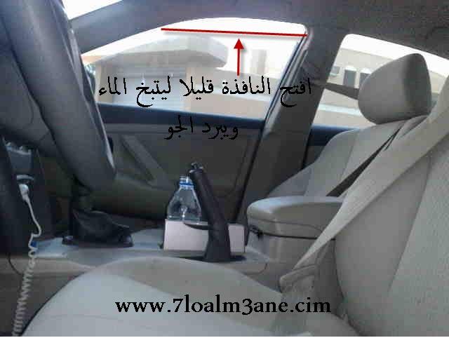 كثيرا ما نعاني من الحرارة داخل السيارة .. خاصة في فصل الصيف عند خروجنا من الدوام مثلاً .. وداعاً لهذه الحرارة طريقة سهلة جداً .. ومجربة وناجحة 100% ... الطريقة هو وضع علبة ماء مفتوحة داخل السيارة ... تابعوا معي الشرح بالصور .. عند وضع .. علبة الماء .. قم بالتنسيم للسيارة .. أي افتح النافذة قليلاً .. تابع معي ... ملف مرفق 2478 كذا تبدأ عملية التبخر ... وتركب السيارة في عز الظهر .. وتلاحظ تغيير كبير جداً من ناحية حرارة السيارة .. ملاحظة هذه الطريقة أفضل بكثير من وضع شماسة وإذا وضعت كلاهما أحسن. تابع عملية تبخر الماء . ملف مرفق 2479 |
