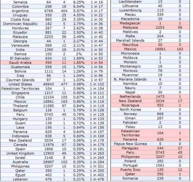 وأجد ان تركيز الاصابات في الدول الاوروبيه وفلوريدا وتكساس اللهم اكفنا شر مااصابهم يارب والله يحفظك . |