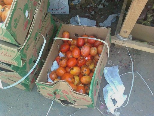 في الوقت التي كنا نشتكي من أسعار الطماطم إلى أسعار خيالية ظهرت في الأسواق طماطم ( زراعة هندية ) ملف مرفق 3841 من الصور السابقة وفي نفس كراتينها كانت مبردة مدة طويلة وبعضها تالفة بسبب طول مدة التخزين أو من المنشاء والكراتين تأتي مقفلة و لا يعرف وضع الطماطم وصاحب المحل متضرر من الطماطم الشبة التالفة لأنه لن يجد من يشتريها حتي الطماطم نستوردها من الخارج ( هندية ) يكفي ( الأرز ) |