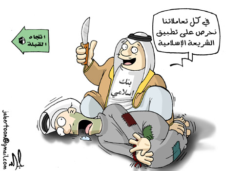 يجب تطبيق الشريعه بحذافيرها عند ذبح المواطن وياريت تكون السكينه حده بس الأرباح والفوائد وإغراق المواطن بالأقساط والديون لم يرد نص صريح بها!!!!!! |