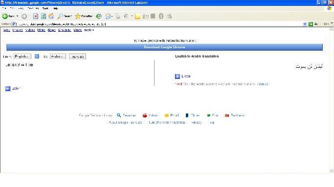 جرب الدخول على موقع ترجمة جوجل Google Translate http://translate.google.com/?hl=en&i...s&tl=en#en|ar| أدخل الجملة التالية لترجمتها Israel will die ومعناها طبعا (أسرائيل سوف تموت) وهذا ما سيعطيك اياه الجوجل فعلا الان قم بتغيير اسم Israel الى أي اسم دولة في العالم، ستعطيك نفس النتيجة، يعني (أمريكا سوف تموت، البرازيل سوف تموت، .... الخ ) الان ضع اسم لبنان Lebanon will die وشاهد بام عينك ترجمتها !!!!!!!!!!! صراحة، حبيت الحركة مررررررررررررة ، وتحية للاخوان اللبنانيين، اكيد حد لبناني له يد بهالموضوع!! :clap_1: :clap_1: :clap_1: :clap_1: ملف مرفق 4623 |