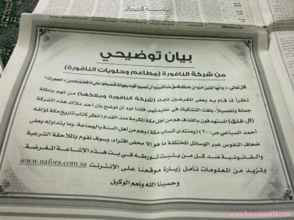 قال نبي الرحمه : عسى أن يخرج من أصلابهم من يعبد الله . فيما يخص مطعم النافورة قبل أقل من اسبوع ذهبت الى أحد فروع مطعم النافورة ووجدتهم قد عينوا في فرعهم احد المواطنين السعوديين من ذوي الاحتياجات الخاصة ( اصم وابكم ) . فهذا شيئ يشكرون عليه . |