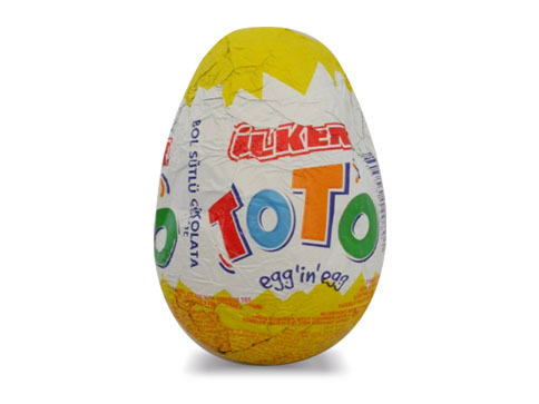 هل تقصد هذه النوعية - اشتريت من قبل مرة أو مرتين فيه لعبة داخل علبة بلاستيك بيضاوية وخطورة هذه الألعاب قطعها صغيرة جدا غير مناسب لصغار السن ... قد يبتلعها في آى لحظة ... ونوعية الشوكلاتة نوعين شوكلاتة بيضاء عليه طبقة شوكلاتة بنية , ليس عليه إقبال بسبب ارتفاع سعره . ولا أعرف شركة أخرى تنتج نفس الطريقة !!! |