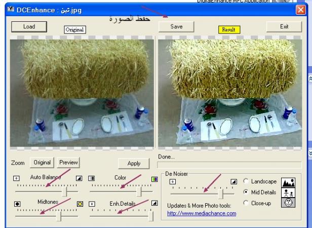 السلام عليكم ورحمة الله وبركاته برنامج بسيط وسهل استخدامه خاصة لمن يعاني من عدم وضوح الصور البرنامج لتنقية الصور DigitalEnhance الأسهم يساعدك في التحكم في الوضوح ومكان الحفظ وهذا يساعد الأعضاء ممن يعانون من عدم وضوح الصور Digital Camera Enhancer free download التحميل من الرابط |
