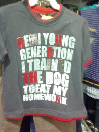 خلال تسوقي في مركز ( السعر المنافس ) جدة كيلو 5 وجدت أن الأسعار الملابس بداء يرتفع قليلا قبل قدوم رمضان والعيد وهذا أنسب وقت لشراء ملابس العيد ولكن قمت بتصوير عدد من الملابس أستغربت وجود صور وعبارات على الملابس مالهدف من وضعها على الملابس |