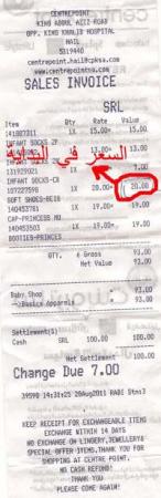 راجعت الفاتورة تفاجأت ان سعرها 20 ريال بالفاتورة وعندما رجعت واستفسرت من الكاشير تغير أسلوبه