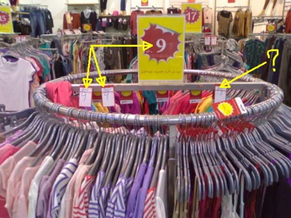 المشكلة ليست في التخفيض نفسه أو ما هو مخفض .. المشكلة في طريقة عرض التخفيض التي توهم المشتري بأن كل ما هو معروض على هذا الستاند بسعر واحد ليفاجأ بإختلاف الأسعار عند الكاشير. |