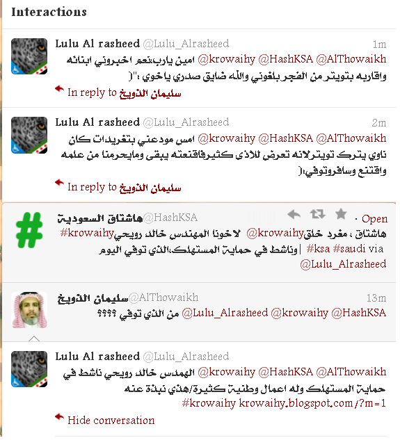 نبأ في تويتر عن وفاة المهندس / خالد الرويحي (زميلنا في المنتدى)