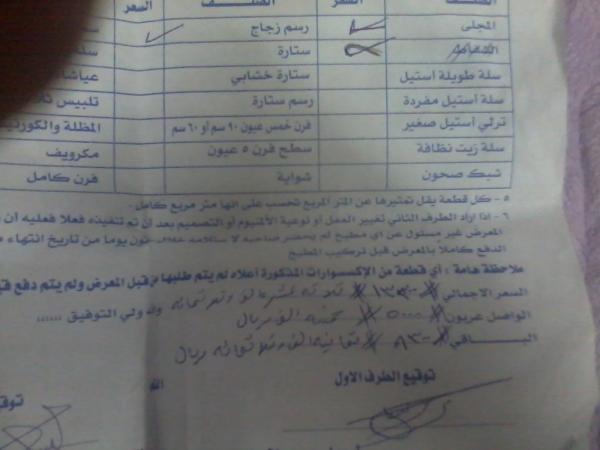 عادة يتم دفع 50% من المبلغ عند توقيع العقد والباقي عند التركيب. بإمكانك أختي الكريمة رفع صور الفواتير هنا إو إرسال صورة منها على إيميل الموقع : mqataastat@gmail.com ونحن نتكفل بنشرها عنك ومحاولة إيصالها لأحد القانونين ليعطيكي رأيه فيها. |
