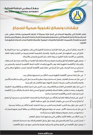 ارشادات صحية وتوعية غذائية للحجيج من جهاز أبوظبي للرقابة الغذائية: