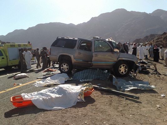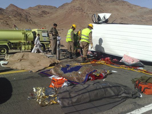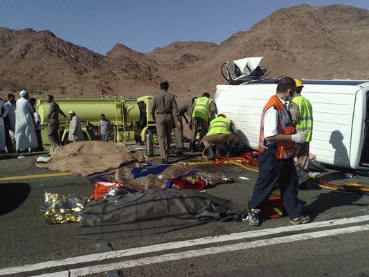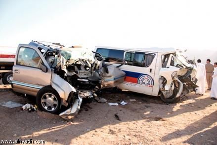 اللهم اغفر لهم وارحمهم وعافهم واعفوا عنهم واكرم نزلهم ووسع مدخلهم وغسلهم بالماء والثلج والبرد ونقهم من الذنوب والخطايا كما ينقى بيض من الدنسالثوب الااللهم جازهم بالحسنات احسانا وبالسيئات مغفرة ورضوناالله رحمهم رحمة واسعه واسكنهم فسيح جناته والهم اهلهم وذويهم الصبر والسلوانانا لله وانا اليه راجعون صوراً لحادث المعلمات الشنيع في تبوك . . ولا حول ولا قوة الا بالله . تابع صاحب السمو الملكي الأمير فهد بن سلطان بن عبد العزيز أميرمنطقة تبوك الحادث المروري الأليم الذي وقع هذا اليوم وأودى بحياة 11 شخص منهم 6معلمات وسائقهن و4 أشخاص من عائلة واحدة وذلك على طريق تبوك / ضباء على بعد 50 كيلومتر من مدينة ضباء ووجه سمو أمير منطقة تبوك منذ اللحظة الأولى لوقوع الحادث وكيلإمارة منطقة تبوك ومحافظ ضباء ومدير الشئون الصحية ومدير شرطة المنطقة ومدير تعليمالبنات بالمنطقة وكافة الأجهزة الأمنية والمدنية بتقديم كافة المساعدات والرعايةالصحية للمصابين بالحادث وتخصيص طائرة عمومية نقلت المصابين من موقع الحادث إلىالمستشفيات بالمنطقة ونقل المتوفين إلى ذويهم وأسرهم في مدينة تبوك . وأعرب سموهعن مواساته لذوي واسر المتوفين وتقديم عزائه لهم ودعا الله سبحانه وتعالى أنيتغمدهم بواسع رحمته وان يلهم أسرهم وذويهم الصبر والسلوان . كما وجه سمو أميرالمنطقة كافة المستشفيات المدنية والعسكرية باستقبال المصابين بالحادث وتقديم لهمالرعاية الصحية وقد قام محافظ ضباء ( مساعد السد يري ) بالوقوف على الحادث ونقلالمصابين بالحادث والمتوفين وبزيارة المصابين في مستشفى ضباء العام وتقديم لهم كلرعاية صحية ومواساة اسر وذوي المتوفين ونقل لهم تعازي سمو أمير منطقة تبوك . وكان الحادث الأليم قد وقع ظهر اليوم الاربعاء على بعد 50 كيلو متر من مدينةضباء اثر اصطدام سيارة ( ماكرو باص )وسيارة ( جمس صالون ) وجهاً لوجه ونتج عنالحادث وفاة 6 معلمات وسائقهن قادمات من عملهن في مدارس أبو العجاج والديسه متوجهاتإلى تبوك وهن : 1/ خلود المطيري 2/ سلطانه الشهري 3/ نوه العطوي 4/ مريمالمحمدي 5/ عائشة البلوي 6/ نوف العنزي 7/ عبد الله الغامدي وتم نقلهن إلىتبوك . كما نتج عن الحادث وفاة سائق الجمس صالون / احمد مصطفى عسيري وكلاً منابنه / عبد الرحمن وابنته/هدى ووالدته وتم نقل زوجته وبناته / منيره وعفاف ونورهوابنه / عبد الله المصابين بالحادث لمستشفيات مدينة تبوك والله ان المصيبه مؤلمه شاهد الكتاب ملف مرفق 277 |