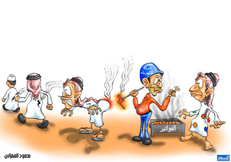 اما شركة الكهرباء فلها كامل الصلاحيه..بس على المواطن المسكين..اما بعض التجار فما تقدر..اخبرني زميل يعمل بشركة الكهرباء بان الشركه هددت ثلاجات شربتلي بقطع التيار لتأخر السداد..فابلغهم بانه سوف يرفع دعوه قضائيه في حال تنفيذ تهديدهم للتعويض بملايين الريالات لفساد الاطعمه بالثلاجات.. عندها تراجعت الشركه عن تهديدها.. نتمازح مع زملائنا بشركة الكهرباءعن سوء الاوضاع عندهم بأنه بسب دعاوي الأرامل والأيتام الي يقطعون عنهم الكهرباء.. |