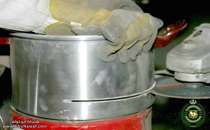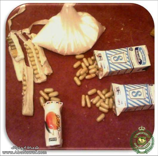 بسم الله الرحمن الرحيم يطيب للمديرية العامة لمكافحةالمخدرات التواصل معكم مرة أخرى مقدمة لا يخفى على الجميع تعدد وسائل التهريب وأن مهمةمهربي المخدرات هي ابتكار طرق جديدة في تهريب المخدرات إلى المملكة العربيةالسعودية ومحاولة خداع رجال أمننا بطرقهم الجديدة والمبتكرة ولكن رجال المكافحةعيون ساهرة على أمن الوطن و لهم بالمرصاد وذلك عن طريق مراقبتهم ومتابعة جميعتحركاتهم. هذة الصورة تبين المدى الذي وصلوا إليه مهربي المخدرات وهو تهريبالمخدرات في المصحف الشريف. وهذه بعض الوسائل التي أستخدمها المجرمون لتهريب المخدرات لبلادنا وبث سمومهم في أجساد أبنائنا القضيةالأولى معلومات عن القضيةنوع المادةالمهربة: حبوب الكبتاجونالكمية المضبوطة : 1.351.500 كيلو جرام / مليونوثلاثمائة وواحد وخمسون الف وخمسمائة حبةطريقة التهريب: بداخل قاعدة أواني الطهي |