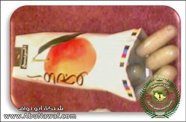 منقول عن المديرية العامة لمكافحة المخدرات لا يخفى على الجميع تعدد وسائل التهريب وأن مهمة مهربي المخدرات هي ابتكار طرق جديدة في تهريب المخدرات إلى المملكة العربية السعودية ومحاولة خداع رجال أمننا بطرقهم الجديدة والمبتكرة ولكن رجال المكافحة عيون ساهرة على أمن الوطن و لهم بالمرصاد وذلك عن طريق مراقبتهم ومتابعة جميع تحركاتهم. وهذه بعض الوسائل التي أستخدمها المجرمون لتهريب المخدرات لبلادنا وبث سمومهم في أجساد أبنائنا القضية الأولى معلومات عن القضية نوع المادة المهربة: هيروين تاريخ الضبط: 12/3/2008م الكمية المضبوطة : 3.923 كيلو جرام طريقة التهريب: بداخل علب الحليب والعصائر ملف مرفق 1526إجمالي الكمية القضية الثانية معلومات عن القضية نوع المادة المهربة: حبوب الكبتاجون تاريخ الضبط: 24/1/2008م الكمية المضبوطة : 101.154 مائة وواحد ألف ومائة وأربعة وخمسون حبه طريقة التهريب: بداخل فاكهة الرمان إجمالي الكمية القضية الثالثة معلومات عن القضية نوع المادة المهربة: حبوب الكبتاجون تاريخ الضبط: 7/11/2007م الكمية المضبوطة : 2.008.000 مليونين وثمانية آلاف حبة طريقة التهريب: بداخل علب العصائر إجمالي الكمية (المادة الحادية والأربعون من نظام مكافحة المخدرات الجديد) يعاقب بالسجن مدة لا تقل عن ستة أشهر ولا تزيد عن سنتين كل من حاز على مادة مخدرة وكان ذلك بقصد التعاطي والاستعمال. (آثار تعاطي المخدرات) أثبتت التقارير الطبية بأن تعاطي المخدرات يسبب تلف في مركز نهاية الأعصاب وينتج عن ذلك بعد فترة إختلال عقلي غير قابل للعلاج. (طرق التعرف على متعاطي المخدرات) v يتجنب أفراد أسرته. v تقلب حالته المزاجية. vيكثر من النوم أو يبقى يقظاً ساعات طويلة. v تدهور مستواه التعليمي فجأة. v قدرته ضعيفة على التركيز. v احمرار في العينين وأتساع حدقة العين. v تدهور منضرة الخارجي وعدم الاهتمام بالمظهر. |