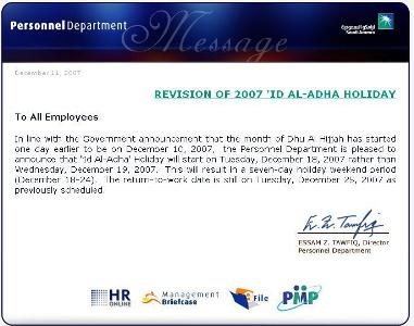 > للاخوه موظفي ارامكو يوم 18 ديسمبر اجازه يوم عرفه