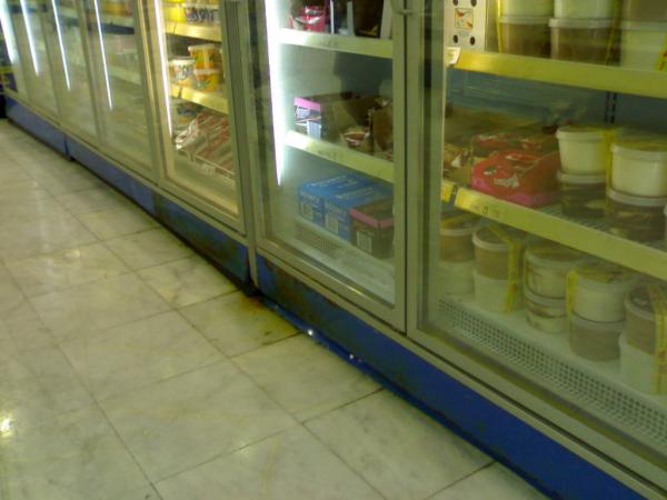صورت صورتين للثلاجات على السريع .. شوفوا حالها و شكل الأرضيات تحتها و قيسوا عليها باقي المحل.