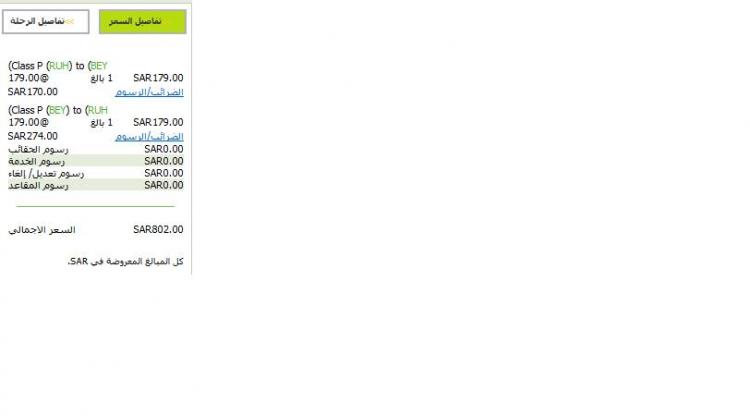 لاحظوا سعر التذكرة مع امكانية التغيير 560 مع ضرائب 160 ريال، اضافة الى 20 ريال قيمة الحجز :