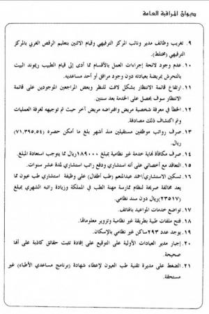 في مستشفى الملك خالد التخصصي للعيون، والذي كشف عن ضعف متابعة الإدارة التنفيذية