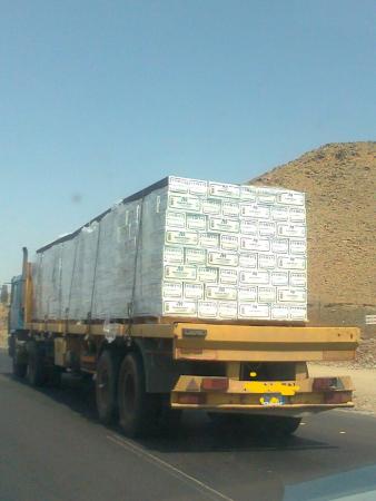 للصورة المرفقه يجب تغطية الكراتين ( بطربال ) لحجب أشعة الشمس و تخفيف درجة الحرارة ( المفترض عدم تجاوزها 40 درجة مئوية مهما كان السبب في فصل الصيف ) لكي لا يؤثر ارتفاع حرارة البلاستيك على طعم الماء .